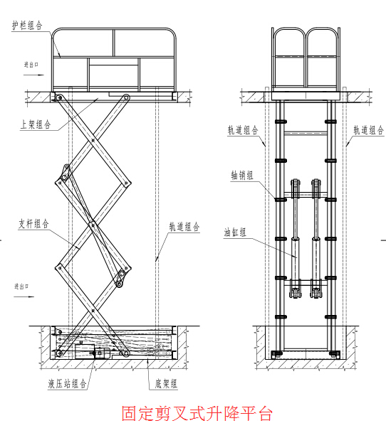 固定剪叉式升降平台是固定安装在工厂车间、仓库、生产线等场所,采用剪叉式结构把货物垂直 运到指定楼层或高度,进行货物的装卸作业。